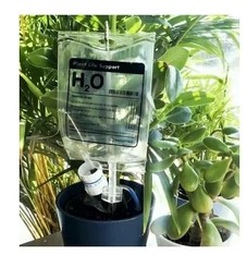 Sistema de irrigação por gotejamento com visual de bolsa de soro.